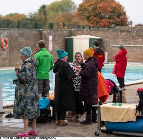 Everyone will then get changed for a supervised dip in the pool, so bring your swim gear (wetsuit if you want it- it’s your choice), towel and warm layers to change into. The coaches will be on hand to encourage and advise you if you need, will remain on poolside until you are safely out and changed, and will happily chat about your experience and how it made you feel. Most people end up in the café for a warm drink and a chat.